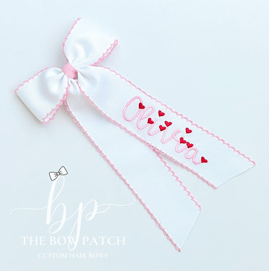 Embroidered "Sweethearts" Moonstitch Schoolgirl Bow