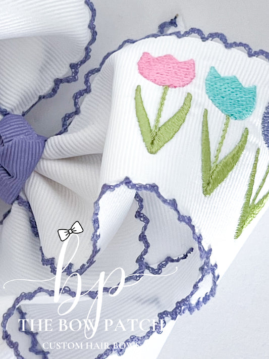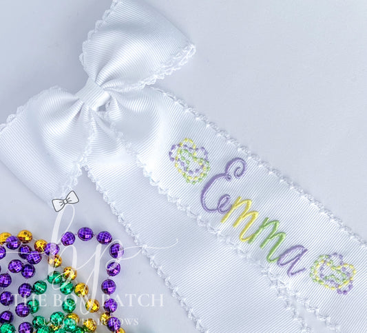 Embroidered Mardi Gras Moonstitch Schoolgirl Bow