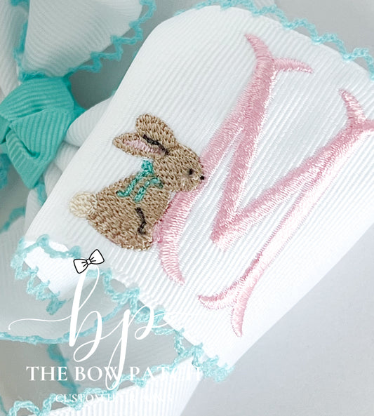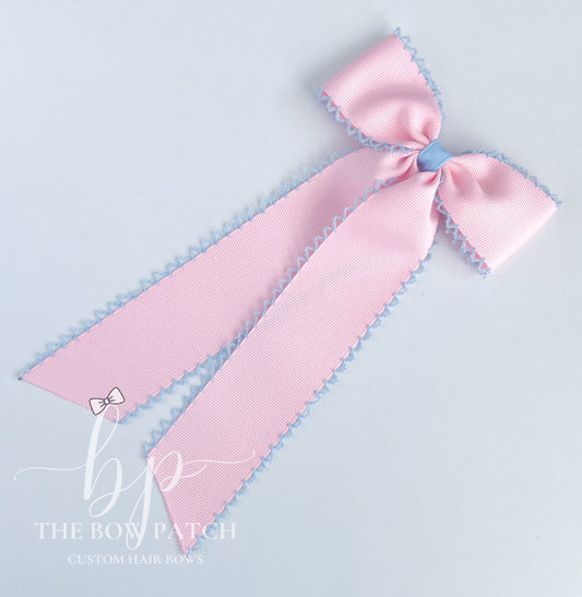 Baby Pink with Light Blue Moonstitch Schoolgirl Bow