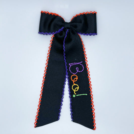 BOO! Embroidered Moonstitch Schoolgirl Bow