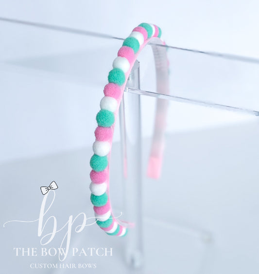 Mint and Pink Pom Pom Headband